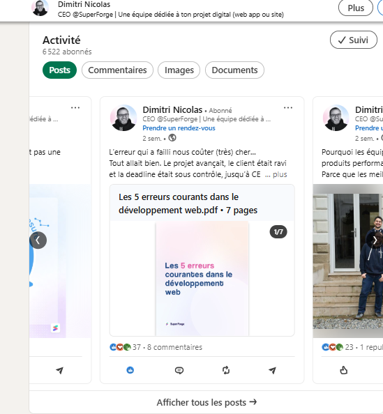 Suivi des influenceurs tech et développeurs qui partagent des conseils et des tutoriels sur les nouvelles technologies.